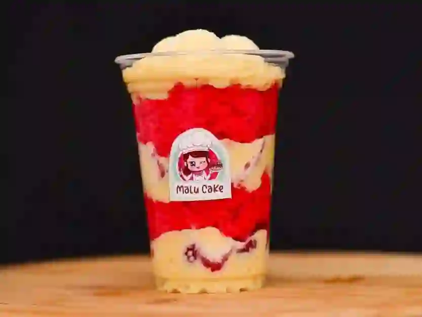 Copo de bolo pão de ló, recheado com brigadeio de Ninho e morangos. Copo 400ml.