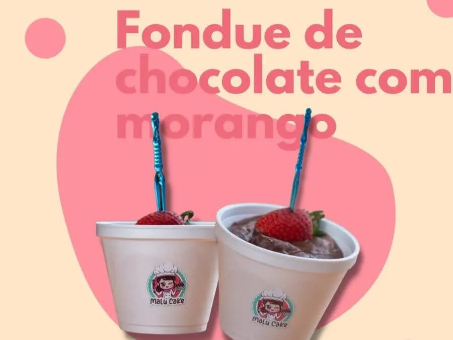 Chocolate derretido com frutas.
